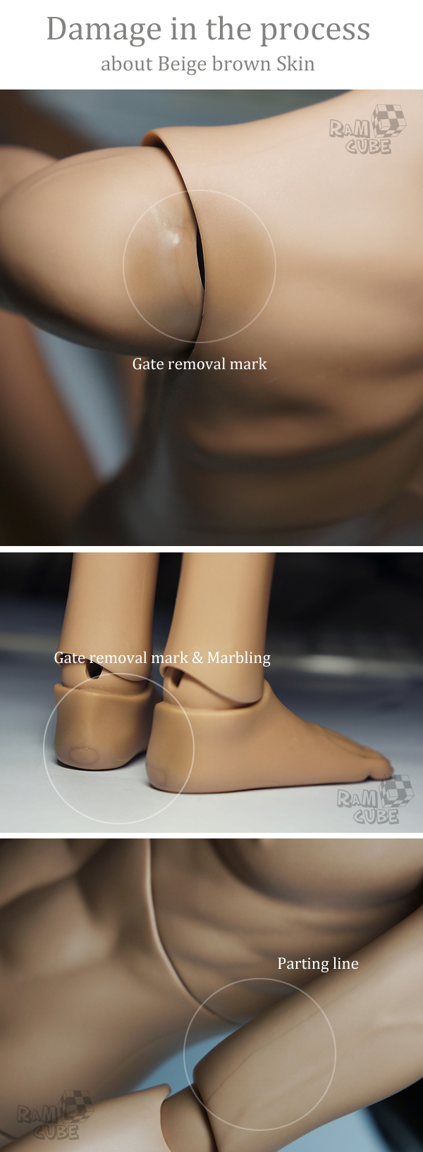 The process damage of the Beige brown skin is the same as above.